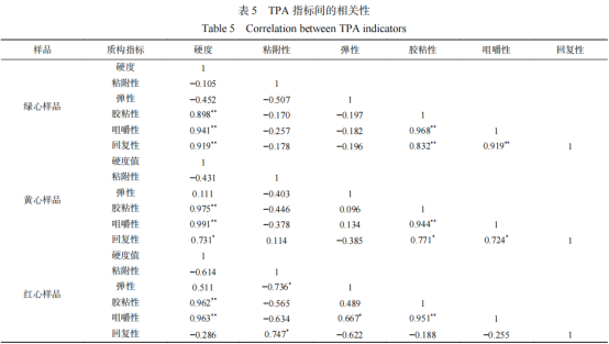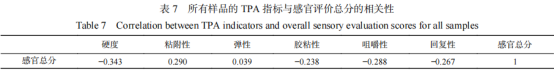 05 感官評價(jià)指標(biāo)與TPA指標(biāo)間的相關(guān)性